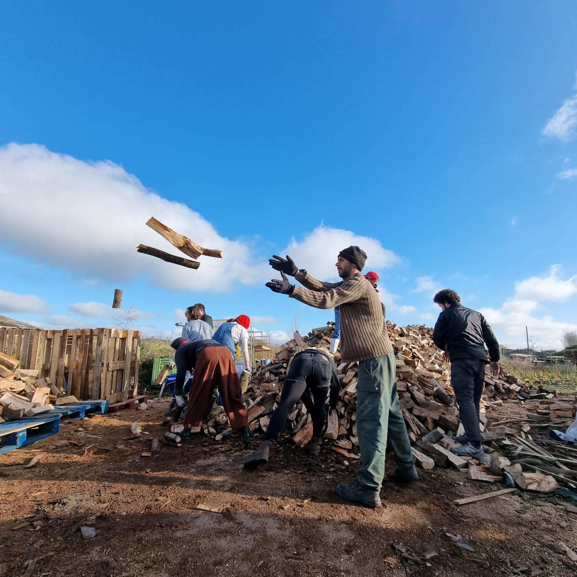 Le projet Woodyard réceptionne, coupe et distribue du bois dans ces différents lieux de vie depuis 2016. Il participe à la réponse humanitaire d'urgence visant à couvrir les besoins des personnes en situation d'exil pendant la saison froide. Face aux conditions de vie extrêmement difficiles, Woodyard distribue jusqu'à 7 tonnes de bois par semaine.