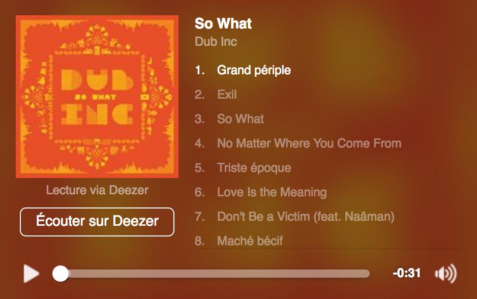 22/06/2016DeezerGrand périple et Triste époque en écoutePour les aficionados de Deezer, vous y retrouverez nos deux nouveaux morceaux issus du prochain album "So what" : "Grand Périple" et "Triste Époque" !